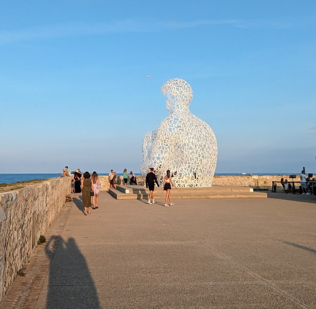 At the end of the long wharf – Quai de Milliardaires you will find The Nomade statue by Spanish sculptor Jamue Plensa. The Nomade is a monumental sculpture eight meters high of a squatting figure, made out of letters.