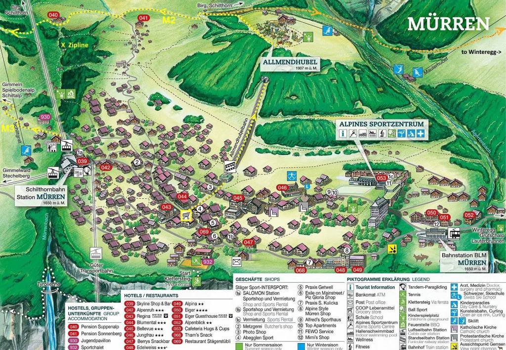 Lunch at Eiger Guesthouse Mürren -, explore Murren take pics at Murren Viewpoint (on the img below close to 068) . Img might not be very accurate.